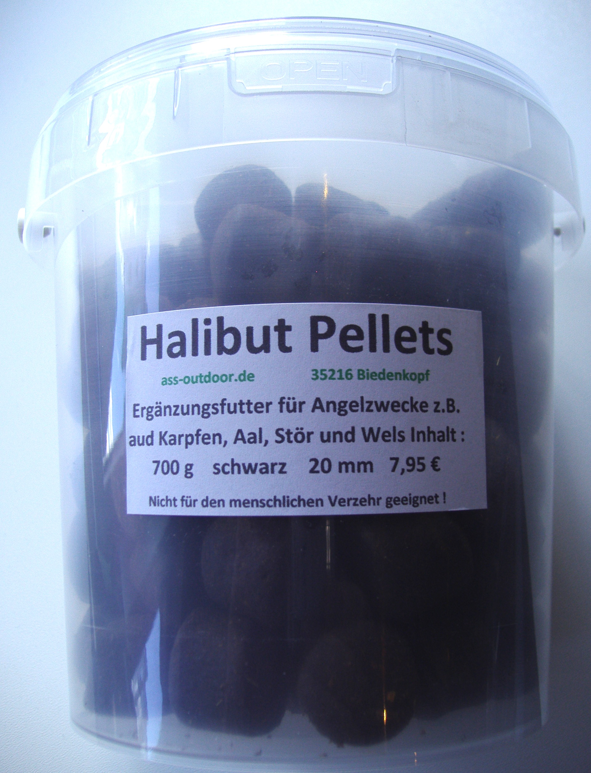 Halibut Pellets sind oft gepresste Köder auf Fischmehlbasis. Zuweilen wird auch Krabben-, Shrimp- und Krebsmehl verwendet. Die braunen Stinker sind reich an Ölen und Aminosäuren und ein klassischer Köder zum Angeln auf Aal, Karpfen, Wels oder Stör. Oft werden diese Köder als Zusatzfutter eingesetzt und mit Boilies oder Partikeln gefüttert. Dies macht Sinn, da Pellets einen kurzweiligen und hohen Lockeffekt auf Fische ausüben. Aber auch als Hakenköder sind sie spitze. Zum Karpfenangeln verwendet man meistens Pellets in der Größe ab 20 mm. Das Anködern ist eine sehr einfache Sache. Die Pellets werden wie ein Boilie durchbohrt und auf ein Haar gefädelt. Gesichert wird der Pellet durch einen Stopper auf den der Pellet aufliegt. Die Lösungszeit war vor ein paar Jahren nur sehr gering, so dass man auch in der Nacht aus dem Schlafsack klettern musste um die Köder zu wechseln. Das hat sich glücklicherweise geändert. In aller Regel hält ein stark gepresster Pellet rund 10 - 25 Stunden am Haken.