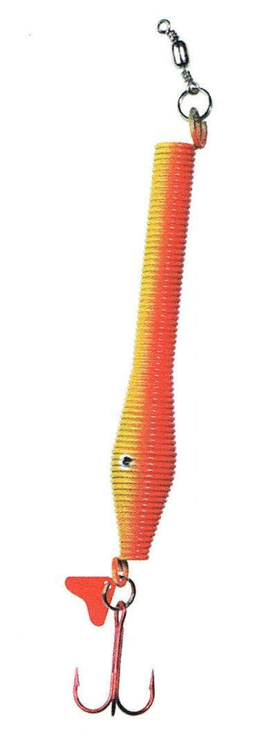 Dieser Spiralköder "Made in Germany" ist aus Edelstahl und wurde handlackiert. Hier gibt es die erfolgversprechenden Farben blau-silber und gelb-rot. Die Körperlänge beträgt 5,5 cm. Die Gesamtlänge incl. Drilling und Wirbel liegt bei 10 cm. Das Gewicht von 7 g kann durch das Befüllen des Hohlkörpers beliebig verändert werden. Als Füllmaterial können Lockstoffe, Teig, Fischpartikel,Krabben, Würmer, usw. Verwendung finden. Die Laufhöhe kann auch durch das Befüllen mit Styropor beeinflußt werden. Durch das am Körperende austretende Wasser entstehen Drockwellen, die durch Drilling und Plättchen noch verstärkt werden. Das übt auf die Räuber eine extreme Reizwirkung aus.