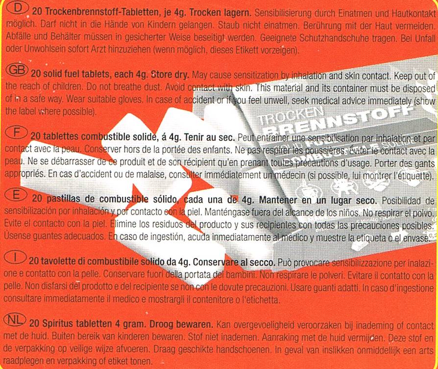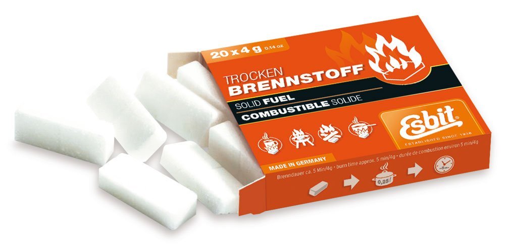 2 Tabletten bringen 1/4 Liter Wasser in ca. 5 min. zum Kochen. Dieser Nachfüllpack ist für den kleinen Taschenkocher oder die Esbit Kaffeemaschine. Die Verbrennung ist ruß-, rauchfrei und ungiftig.