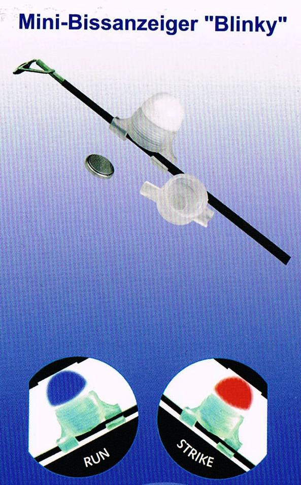 Aktiviert wird er durch leichtes festdrehen der Kappe. Den Biss signalisiert er durch intensives rotes Blinken. Anschliesend leuchtet er noch 10 Sek. in blau nach.