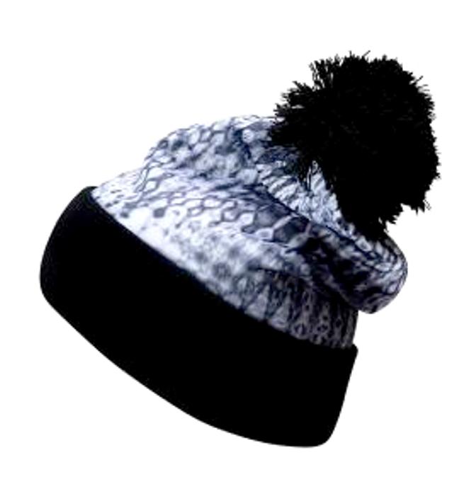 Mützenumschlag und Pompon unifarbig. Sie ist 2-lagig. Für den angenehmen Tragekomfort ist die Innenseite aus Polyacryl gestrickt. Die Aussenseite ist mit einem Sublimationsdruck auf dem Polyesterstoff versehen.