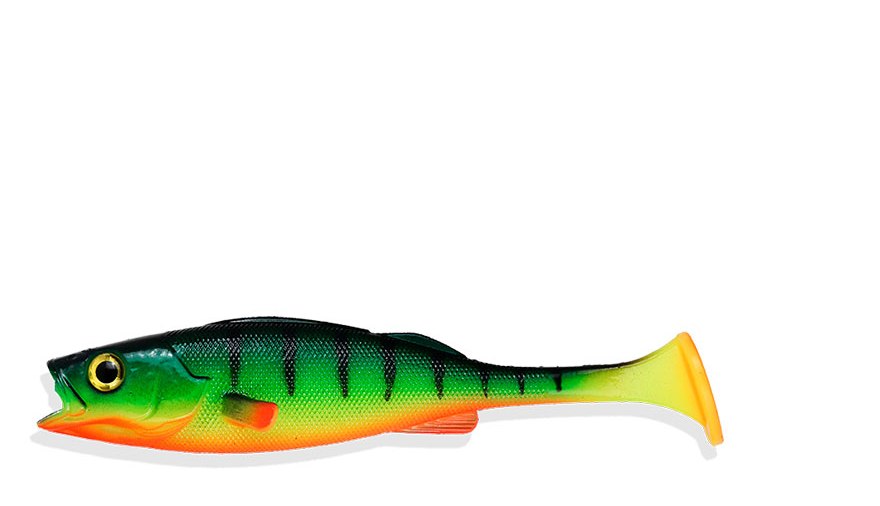 Den KØFI (Köfi) „Barsch“ gibt es in drei verschiedenen Größen und jeweils fünf Dekoren. Bei diesem Köder handelt es sich um einen Action-Shad. Der Tellerschwanz sorgt für jede Menge Druck unter Wasser und einen absolut grandiosen Köderlauf. Neben dem allseits beliebten Firetiger-Dekor, darf natürlich auch das klassische Real Perch-Design nicht fehlen. Ergänzt werden diese beiden Dekore noch vom Ghost Perch, der eine leichte Transparenz aufweist und somit interessante Akzente zwischen Licht und Farbe setzt. Die Flossen des natürlichen und des transparenten Dekors sind uv-aktiv, wobei das Dekor Firetiger eine komplette UV-Aktivität aufweist und extrem kontrastreich ist. Das geöffnete Maul nimmt den Jigkopf perfekt auf.