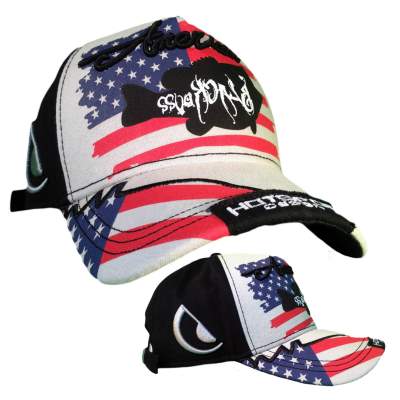 Auf der Amarican Bass Cap von HotSpot Design ist die Sillhouette eines amerikanischen Barschs auf einer amerikanischen Flagge auf cremefarbenen Grund aufgedruckt. Zudem ist auf dem Visor das HotSpot Design Logo aufgestickt. Seiten und Rückseite sind in schwarz gehalten und so wurde die American Bass Kappe zu 100% aus Baumwolle hergestellt.
